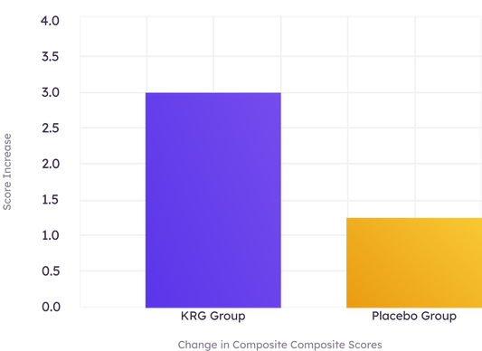 The graph illustrates a greater improvement in composite cognitive scores for the KRG group compared to the placebo group. This indicates that Korean red ginseng supplementation may have beneficial effects on cognitive performance, enhancing executive function, attention, and memory.